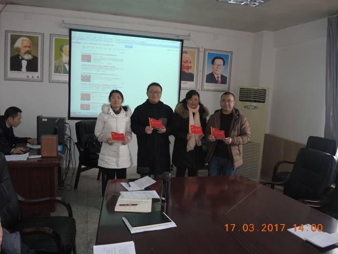会上,王忠奎副书记作了2016年马列主义教学部开展“五先进一满意”深化创先争优活动总结,敖以深主任宣读了中共贵州理工学院马列主义教学部总支委员会文件《关于命名2016年度党员先进岗、科研先进岗及管理服务先进岗的决定》(贵理工马列部党发【2017】2号),随后敖以深主任和王忠奎副书记为先进岗党员进行了颁奖。