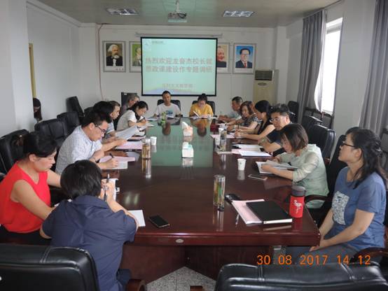 本网讯(张建军供稿) 2017年8月30日下午14:00,龙奋杰校长率学工部、教务处、校办等部门负责人到马列部开展思政课建设专题调研,会议由敖以深主任主持,部门全体教师参加了会议。
