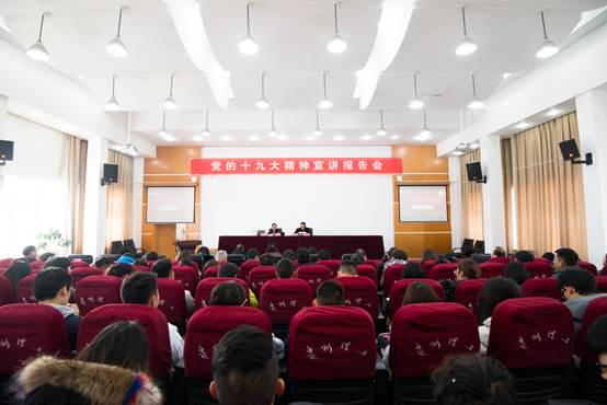 白明政院长以“十九大精神解读”为题,对党的十九大精神进行了深入解读。宣讲报告共分三个部分:一是党的十九大会议的基本情况;二是党的十九大精神解读;三是习近平总书记参加贵州代表团时的重要讲话精神。