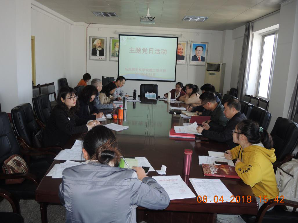 (本网讯 谷骞供稿)2018年4月8日下午,马克思主义学院教工党支部开展学习领会“两会”精神主题党日活动。此次活动坚持理论联系实际的马克思主义世界观与方法论,围绕国家机构改革方案这一主题开展学习讨论。活动由教工党支部书记谷骞主持,学院全体党员教职工参加了此次活动。
