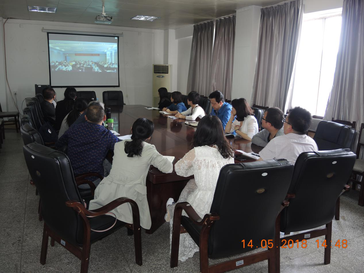 (本网讯 张建军供稿)2018年5月14日,为全面学习、深入领会党的十九大精神,充分发挥思想政治理论课的主渠道作用,将贯彻落实十九大精神贯穿于思想政治理论课的教育教学中,切实做好进教材、进课堂和进头脑工作,贵州理工学院按照要求在1125会议室设立校级分会场,并组织全校思想政治理论课教师参加教育部教材司举办的高校思想政治理论课2018年版教材使用视频同步直播培训。校党委副书记张波、党委宣传部部长、马克思主义学院总支书记金敏亲临分会场与全体思政课教师认真观看了开班式视频直播。