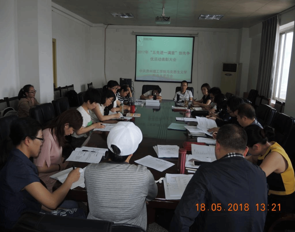 本网讯(马克思主义学院 葛楠/文 张建军/图)马克思主义学院党总支以全面提升部门教学科研管理服务水平为目标,将“创先争优”积极落实在行动上,结合学院实际情况开展了一系列卓有成效的活动,鼓励创新,倡导实干,努力营造“崇尚先进、积极向上、奋发有为”的良好氛围。2018年5月18日,学院党总支召开了2017年开展“五先进一满意”深化创先争优活动总结暨党员先进岗表彰大会。
