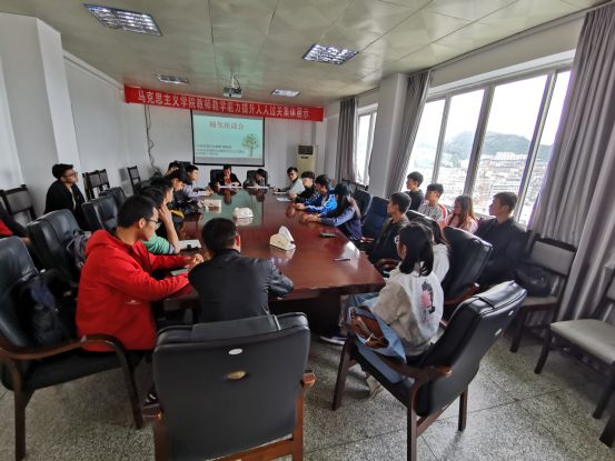 本网讯(马克思主义学院王香莲/文 张建军/图)5月10日中午12:30,我院在行政楼1125会议室召开“概论”和“纲要”学生代表座谈会。学院院长敖以深、“概论”教研室负责人石春艳出席会议,2017级、2016级30余名学生代表参加会议。座谈会由“纲要”教研室主任王香莲老师主持。