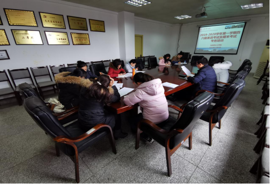 会上常务副院长敖以深传达学习了《关于2019-2020学年第一学期期末考试及相关工作安排的通知(贵理工教通[2019]123号)》,宣读《成立马克思主义学院2019-2020学年第一学期期末考试工作领导小组的通知》。教学科研科科长杨立杰组织大家就《贵州理工学院考务手册》进行了培训,并就学院考务工作作了安排。