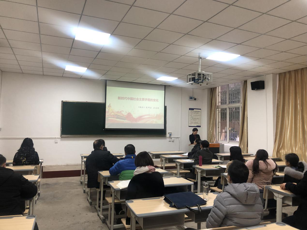 (本网讯 马克思主义学院 李娜/图文)为及时了解思政课教学情况,促进教学质量不断提升,保证我校思政课教师以充满斗志的精神面貌迎接2019年省教育厅思想政治工作检查,12月20日上午9点,校党委书记曾羽带领教务处、各二级学院党总支书记观摩马克思主义学院八位教师教学展示,深入了解我校思政课教师教学情况。