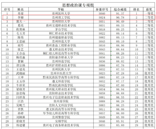 近日,2024年贵州省高校青年教师教学竞赛成绩揭晓,马克思主义学院李娜老师荣获思想政治课专项组二等奖。