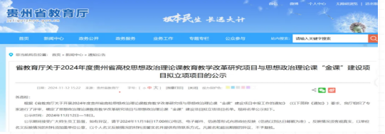 近日,贵州省教育厅2024年度贵州省高校思想政治理论课“金课”建设项目和思想政治理论课教育教学改革研究项目拟立项名单公布。我院蓝文思团队的《毛泽东思想和中国特色社会主义理论体系概论》(JK-022)项目获思想政治理论课“金课”建设项目立项。曾凯老师的《大数据赋能“习近平新时代中国特色社会主义思想概论”课精准教学研究》(JB-028)项目获思想政治理论课教育教学改革研究项目立项。
