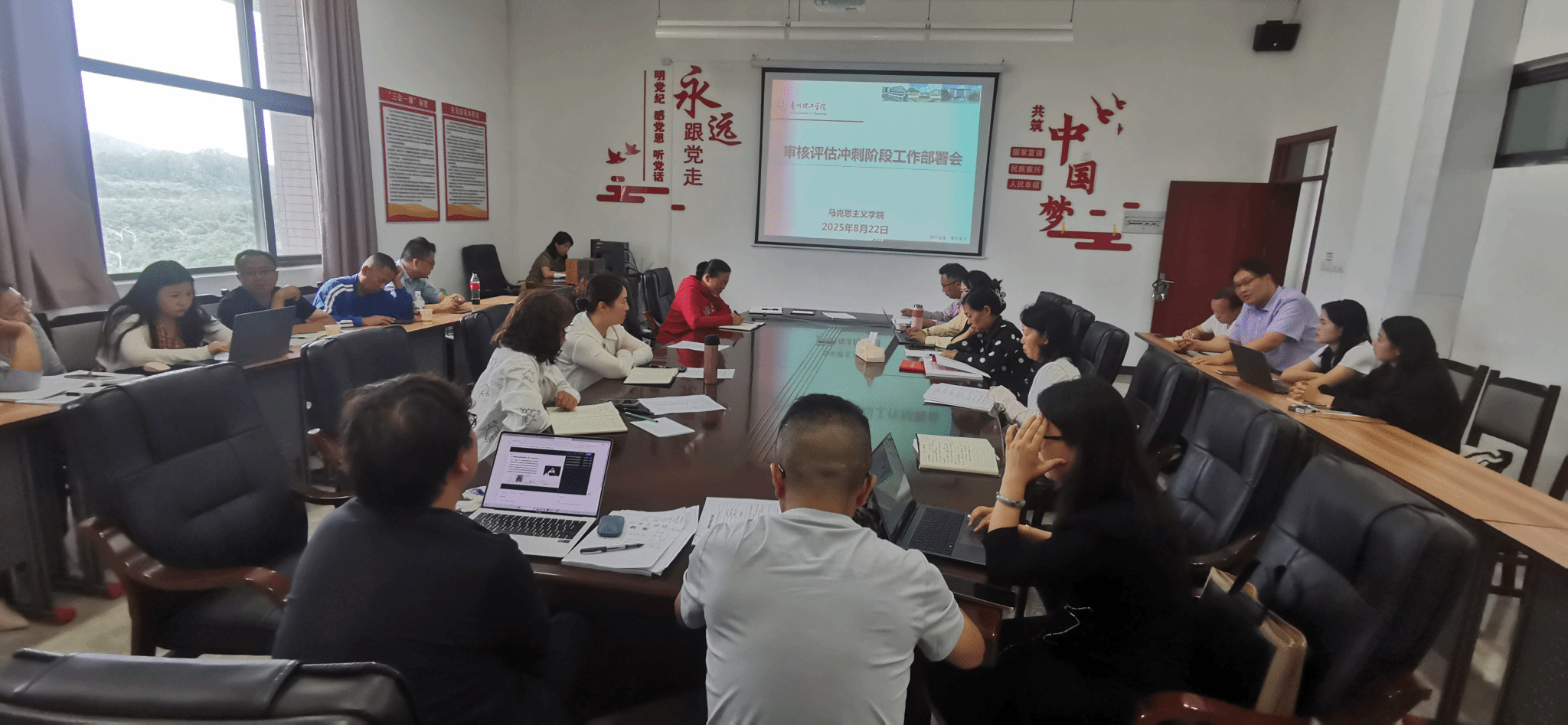 本网讯(马克思主义学院 吴园园/文 张建军/图)2025年8月22日,马克思主义学院在开物楼1501会议室,召开本科教育教学审核评估冲刺阶段工作部署会,旨在进一步推进审核评估工作,对相关具体工作进行再强调和再部署。会议由党总支书记华岚主持。