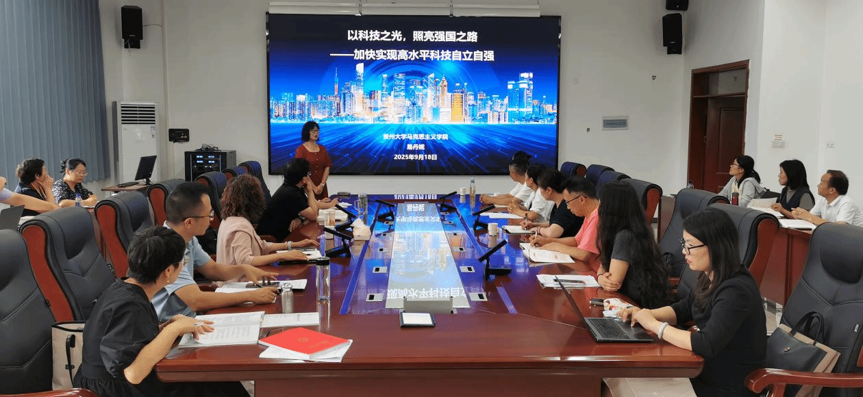 本网讯(马克思主义学院 张语熙/文 张建军/图)9月18日,我院邀请贵州大学马克思主义学院易丹妮副教授作“以科技之光,照亮强国之路”为主题的示范课。副院长杨立杰主持,全体专兼职思政教师参加。