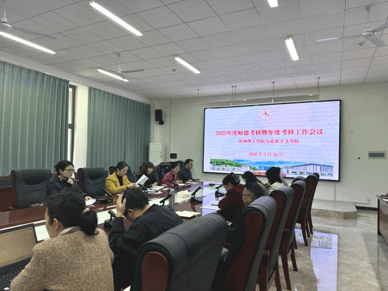本网讯(马克思主义学院 张语熙 文/ 张语熙/图)为全面加强教师队伍建设,切实落实立德树人根本任务,2026年3月26日,贵州理工学院马克思主义学院召开2025年度师德考核暨年度考核工作会议,学院全体教师参会,会议围绕师德师风建设、年度工作考核等重点内容有序推进。