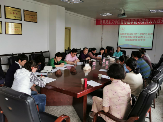 本网讯(马克思主义学院 杨立杰/文 张建军/图)5月15日,湖北理工学院马克思主义学院副院长何建东等一行六人来我院进行教学交流,贵州理工学院马克思主义学院副院长欧阳德君、正处级组织员王忠奎、教学科研科及各教研室负责人参加了此次座谈会。