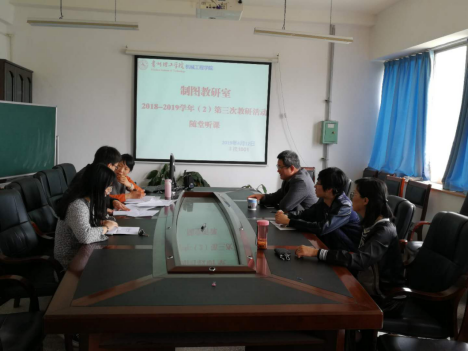 教研室集体备课。2019年3月15日制图教研室在1001会议室开展集体备课活动,深入研读了《工程制图》《机械制图》的课程教学大纲和实习(实训)教学大纲,根据不同专业学生的学情研究了教学计划和教学设计,重点围绕课堂教学共同探讨了教学环节的设计,重点、难点、考点的把控,以及模块式教学方法的实施。袁森老师介绍了《机械制图》课程概况和教学经验。曾萍老师详细解读了其所编《工程制图》教材的特点和知识结构体系,并分享了该门课作为贵州省教育厅一流课程的教学创新成果。