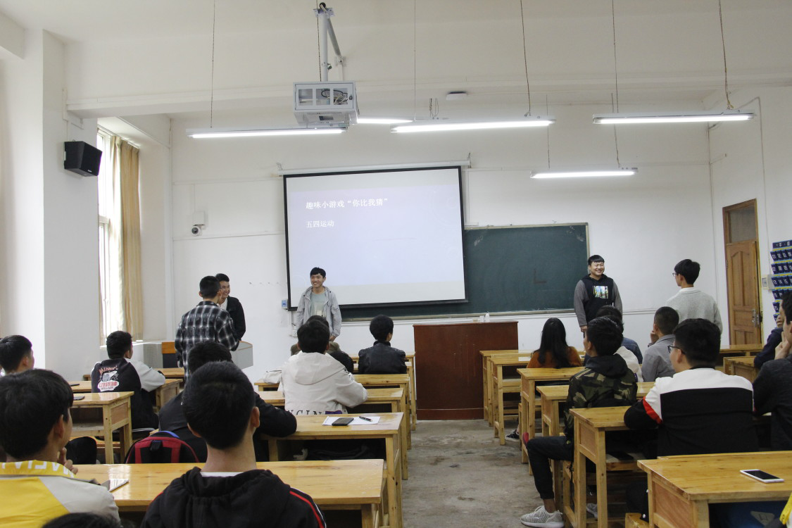 活动伊始,大家一起观看了“纪念五四运动100周年”宣传片,分享了观后感;围绕本科教学工作合格评估知识进行了“你比我猜” 以及评估知识抢答;在随后的“模拟访谈”环节,熊远兴、陈海虹扮演“专家”分别在“食堂” “校园路上”与同学“邂逅”进行了情景对话。