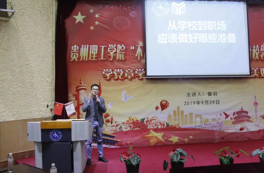 2019年10月12日,贵州理工学院机械工程学院在逸夫广场小礼堂举行“从学校到职场应做哪些准备”的主题讲座,主讲人为易广建设集团有限公司董事长助理莫先猷先生。机械工程学院辅导员张小千老师以及2016级全体学生参加活动讲座。