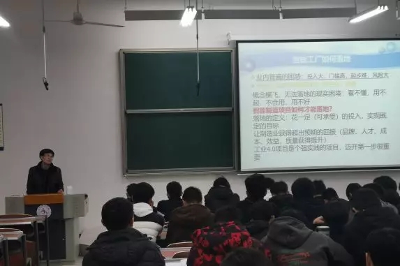 陈威副主任对于机械行业的未来表示乐观,认为机械行业是国家不可或缺的一部分,并且对于国家提出的“中国制造2025”的政策以及智能工厂的落地提出了自己的理解,认为同学们学习好自己的专业是能在未来为国家复兴做出自己的贡献。