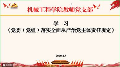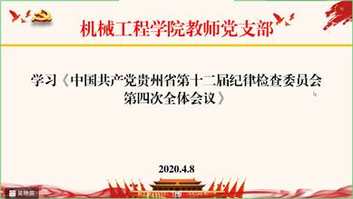 为进一步贯彻落实全面从严治党要求,深刻领会十二届省纪委四次全会精神,4月8日,机械工程学院教师党支部召开云组织生活会,全体教师党员视频连线参加了学习。会议由党支部宣传委员吴艳英同志主持。
