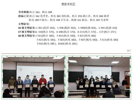 12月20日,机械工程学院团总支学生会在蔡家关校区与12月21日在贵安校区共同举行“第四届读书系列活动颁奖仪式”,学生科卢缨老师、获奖班级与获奖人员参加此次活动。