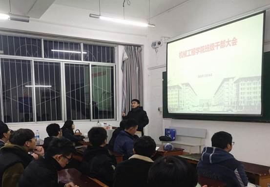 为保障学生寒假假期安全,增强学生防控意识,2020年12月17日,机械工程学院辅导员张小千在蔡家关校区3101教室召开班级干部大会,各班班长、学委参加此次大会。