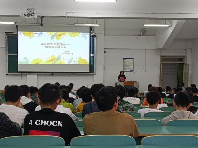 2022年4月27日,机械工程学院学生科在3-415D教室组织召开2019级年级大会,由2019级辅导员刘彦彤老师主持,2019级全体同学参加。