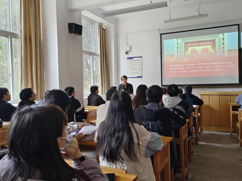 2022年11月23日,机械工程学院机械设计制造及其自动化专业学生党支部、机械电子工程专业学生党支部在第一教学楼107教室联合组织开展“学思践悟二十大,砥砺奋进新征程”主题党日活动,机械工程学院党总支书记熊远兴为全体学生党员上专题党课。
