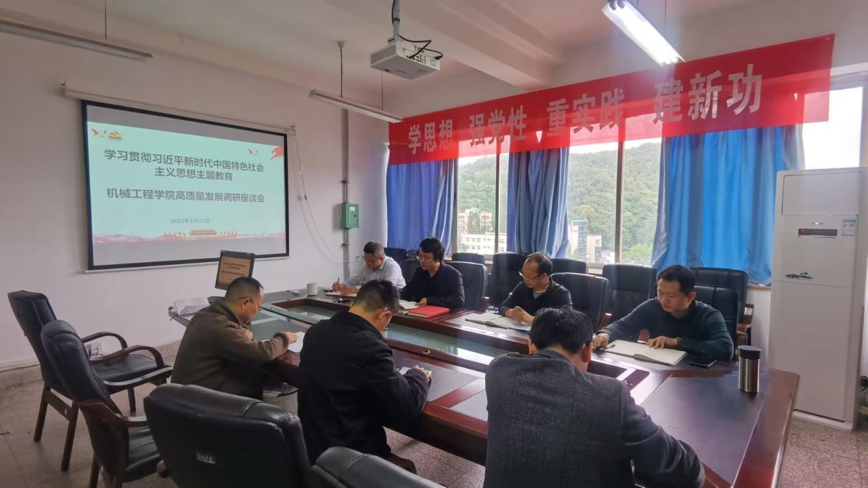 2023年5月23日下午,机械工程学院召开学习贯彻习近平新时代中国特色社会主义思想主题教育机械工程学院高质量发展调研座谈会,学院领导班子成员、各科室负责人、教师代表参加了座谈。