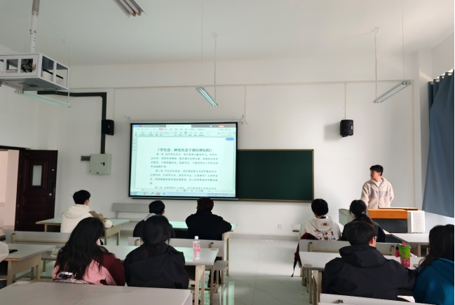 刘冠良同学带领大家共同学习了《关于推动高校学生会深化改革的若干意见》《贵州理工学院学生干部管理办法(修订)》等相关文件,重要讲解了院校两级学生干部任职条件、管理与考核等相关内容。