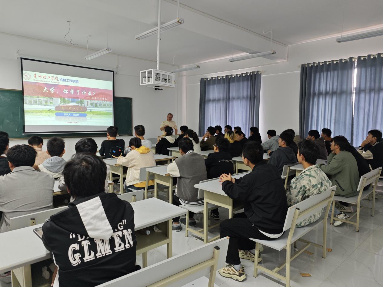 芳华待灼,砥砺深耕。为充分发挥优秀毕业生的示范引领作用,激励学生勤奋刻苦、笃学不倦,2024年11月9日机械工程学院特邀我院2019级优秀毕业生赵文棋同学于致知楼503教室展开题为“大学,你学了什么?”专题分享会,此次分享会由学生科卢缨老师主持,大一大二部分学生参加。