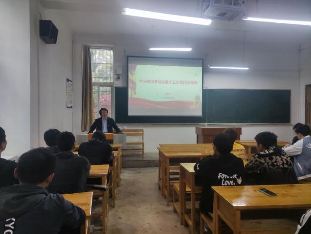 为深入学习贯彻贵州省第十三次党代会精神,2022年5月19日,机械工程学院党总支书记熊远兴到机电201班学生中开展宣讲。