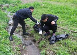 “绿水青山就是金山银山”。细雨霏霏,全体同志充分发挥不怕脏、不怕累的精神,用实际行动向雷锋同志学习,一点点清除阿哈湖堤坝的各类垃圾,河堤焕然一新。