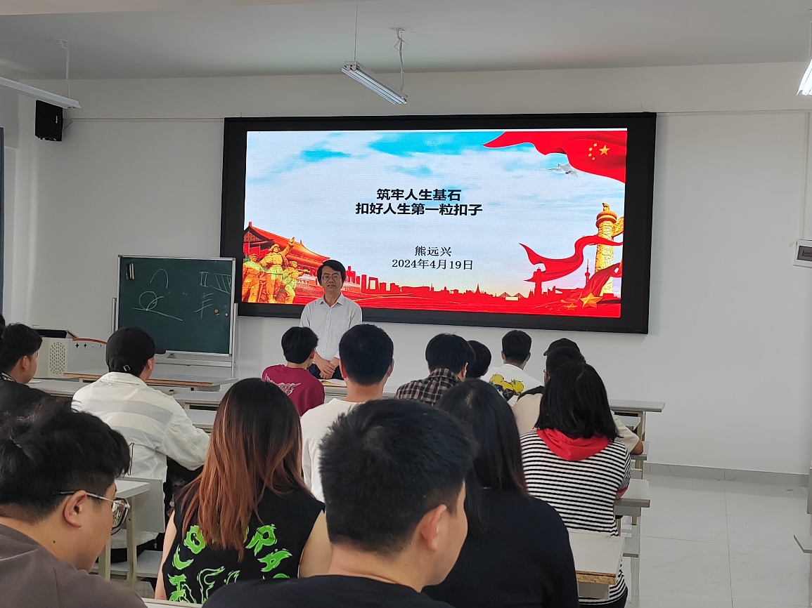 2024年4月19日,机械工程学院党总支开展毕业生廉洁教育,学院党总支书记熊远兴以“筑牢人生基石,扣好人生第一粒扣子”为题,为机电222班全体学生上廉洁教育课。