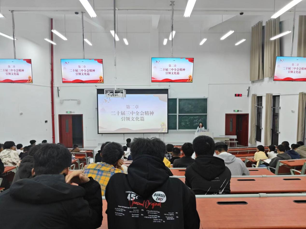 为深入学习和贯彻党的二十届三中全会精神,进一步增强文化自信,2024年10月14日晚19点,机械工程学院在致知楼107开展学习贯彻党的二十届三中全会精神宣讲活动。学院2021级辅导员陈茂老师担任主讲,2024级全体学生参加。