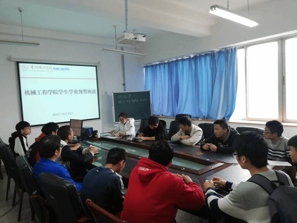 为推进我院学风建设,促进良好院风、班风的形成,本着教育学生、警醒学生,帮助学生顺利完成学业,10月24日中午1点在主楼1001会议室,机械工程学院党总支副书记巫敏组织学业预警学生进行集体警示谈话。