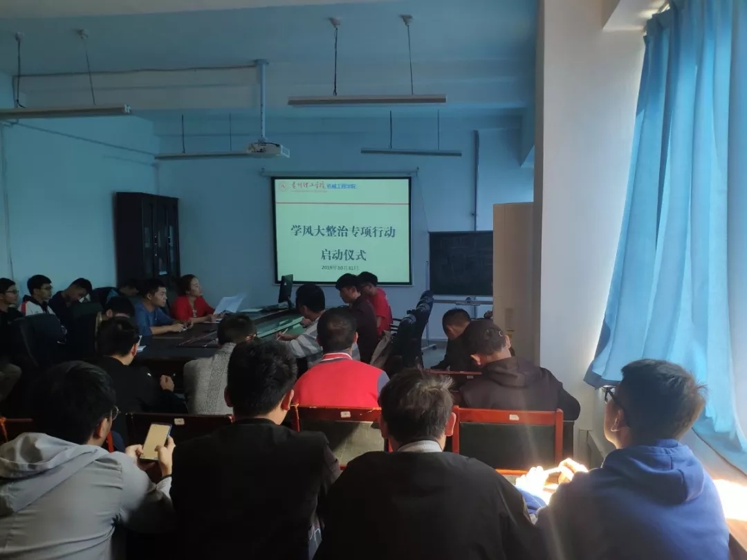 2019年10月31日,机械工程学院在主楼1001会议室召开”百千万 全覆盖”学风大整治启动仪式,2016、2017、2018三个年级各班班长、团支书、学习委员等主要团学干部参加了此次会议,会议由学生科副科长卢缨老师主持。