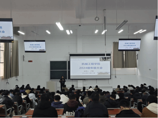 (本网讯 图/文:陈行、机电242)2025年12月11日,机械工程学院在致知楼107教室先后召开专升本班与统招班年级大会,主题为“筑牢反诈安全防线,弘扬诚信考试清风”。2024级全体学生参加,辅导员卢缨老师主持会议。