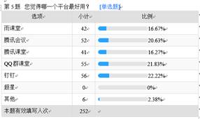 为全面摸查我校“停课不停教、停课不停学”的线上教学质量,为进一步摸清师生网课的困难并总结成功经验,教学质量评估监控中心用问卷星设计了学生满意度及教师适应性两套调查问卷,学生问卷设计30个题目,教师问卷设计36个题目。在学生工作部和各学院师生的支持配合下,截止3月5日,共收回学生有效问卷3990份,教师有效问卷252份。问卷调查结果表明:师生对线上教学的质量评价很好,总体满意,而老师们最喜欢的直播平台是钉钉和QQ群课堂,学生们最喜欢的直播平台是QQ群课堂、雨课堂。