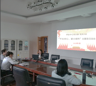 本网讯(评估中心 王新颖)2020年5月22日下午13:00,按照学校机关党委5月主题党日的活动部署,机关评估中心党支部在喀斯特二楼会议室开展“不忘初心、薪火相传”的主题党日活动,活动由党支部书记安艳玲主持,全体党员参加活动。