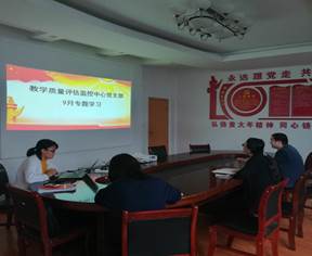 本网讯(评估中心 王新颖)为贯彻落实学校的《关于认真做好学习贯彻落实习近平总书记重要讲话及重要指示批示精神的有关规定》,2020年9月21日上午10:00,机关评估中心党支部在喀斯特二楼会议室开展了“习近平总书记的系列讲话”专题学习会,会议由党支部书记安艳玲主持,3名党员参加活动。
