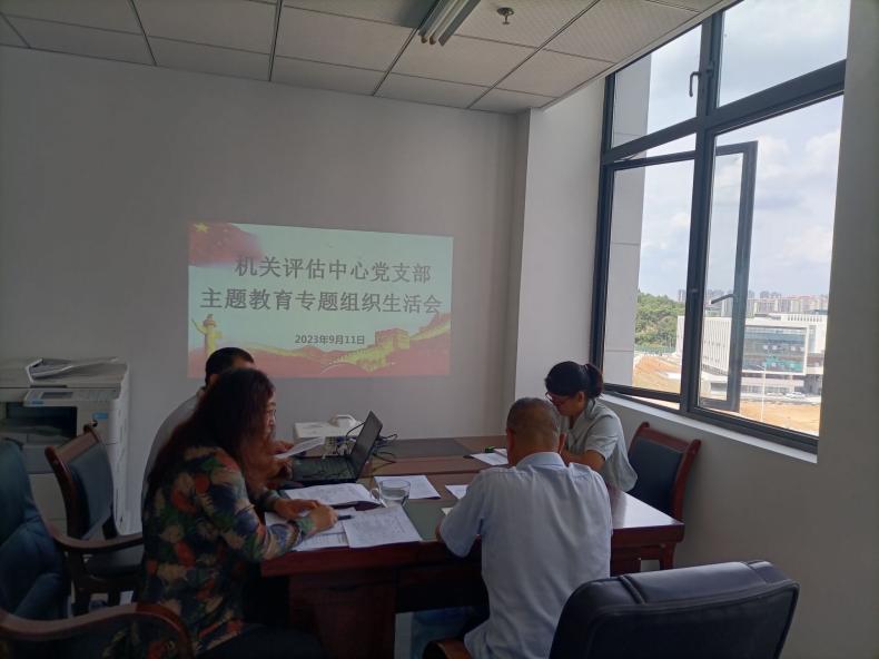本网讯(评估中心 王新颖/文)根据学校要求,机关评估中心党支部于2023年9月11日在401办公室开展学习贯彻习近平新时代中国特色社会主义思想主题教育专题组织生活会。活动由党支部书记邵芳同志主持,评估中心在家党员参加,机关党委毛更生同志到会指导。