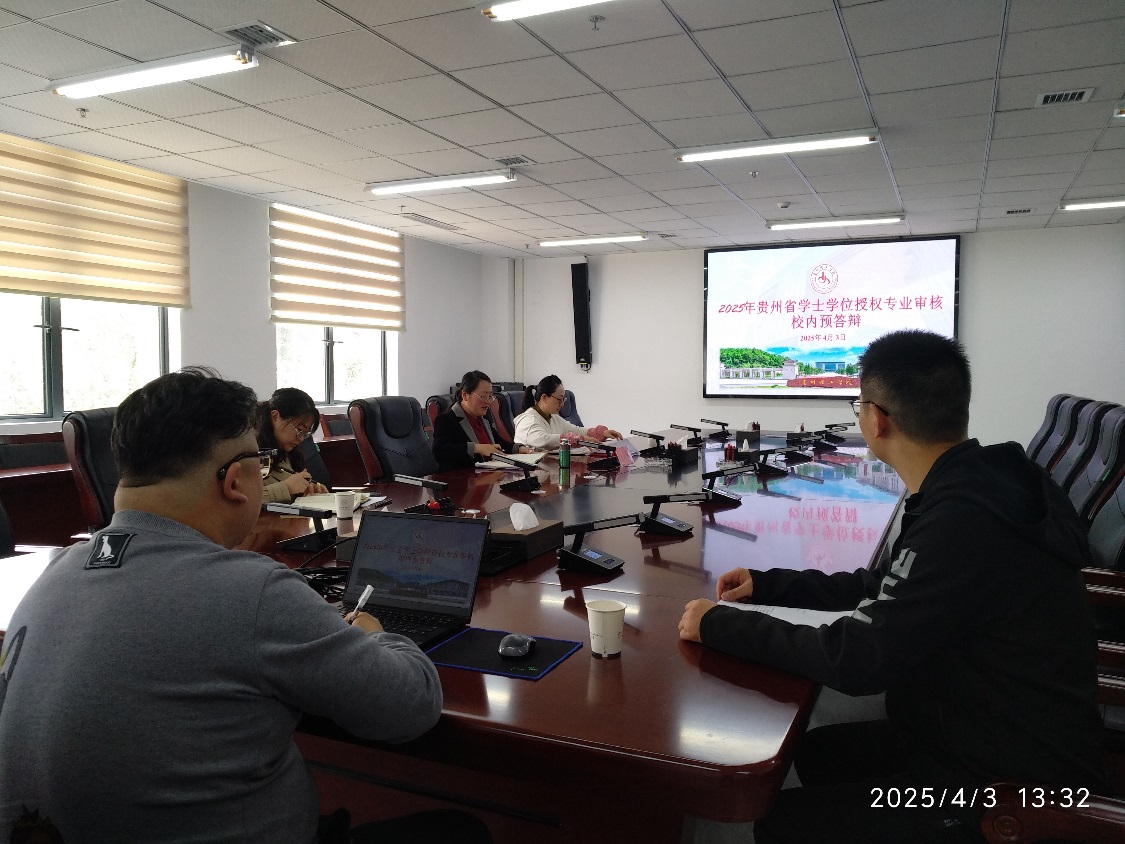 本网讯(图/文 夏黄晶)为有序推进我校2025年新增学士学位授予专业授权审核工作,教学质量评估监控中心(以下简称评估中心)于2025年4月3日13:00在知行楼434会议室组织召开2025年贵州省学士学位授权专业审核校内预答辩会。校领导安艳玲出席会议,建筑与城市规划学院、经济管理学院、矿业工程学院教学副院长及建筑学、投资学、智能采矿工程专业负责人及教学质量评估监控中心工作人员参会。