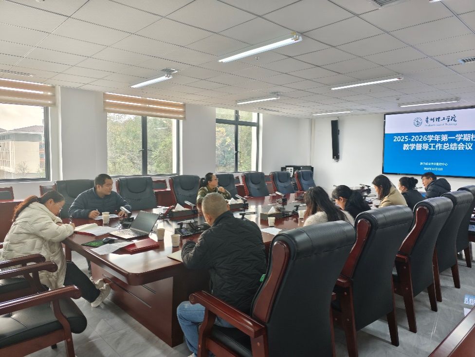 2025 年12月12日上午,贵州理工学院在知行楼434会议室召开2025-2026学年第一学期校级教学督导工作总结会。校级督导组成员、教学质量评估监控中心相关人员参加会议。会议由教学质量评估监控中心主任陈筠主持。