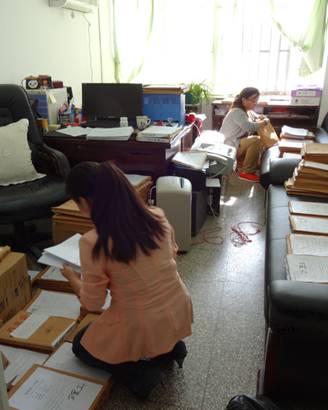 人事处工作人员整理职称材料