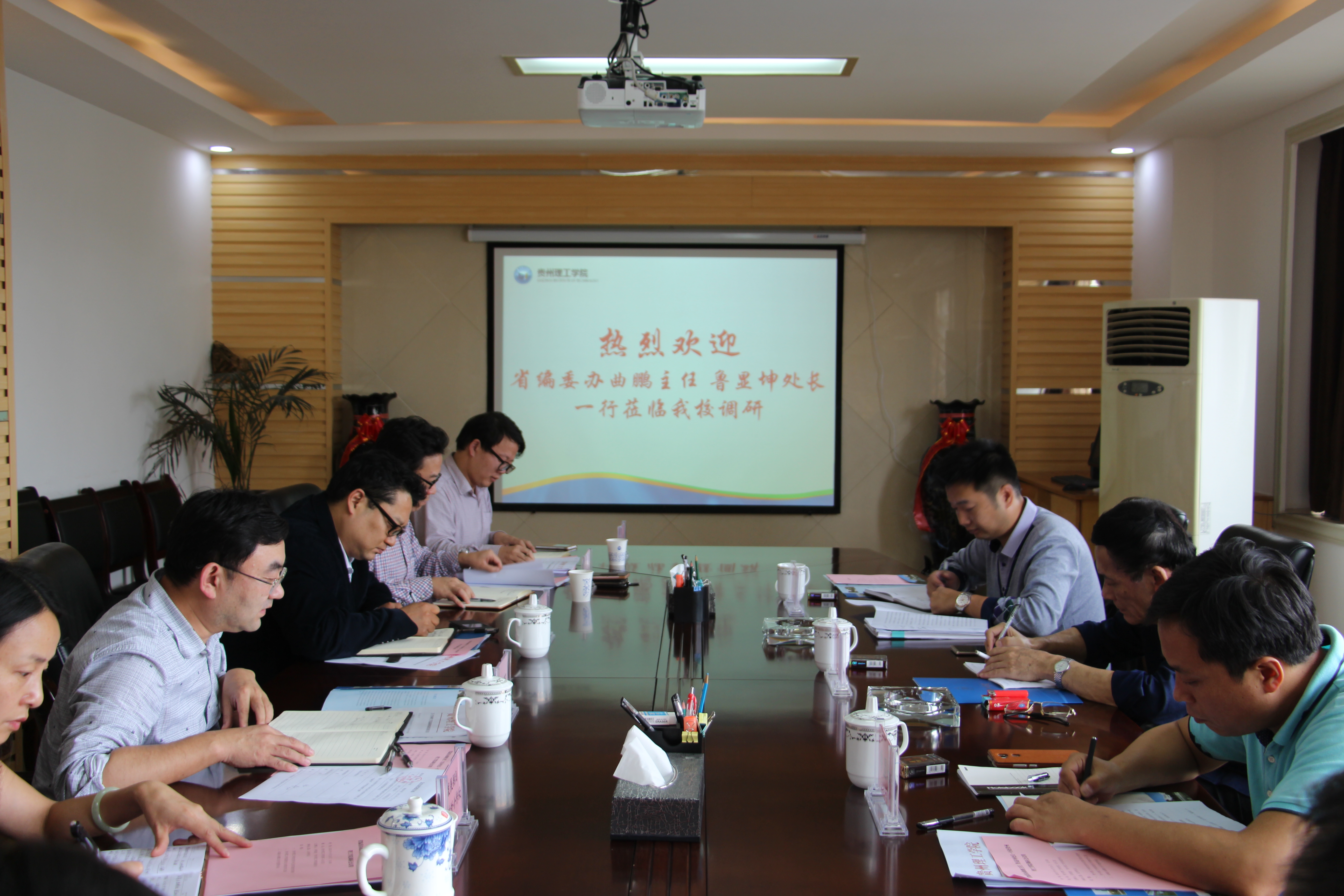 (人事处 黎安茹 讯)2015年9月24日下午,省编委办曲鹏主任一行到我校开展编制及机构设置情况调研。校党委书记曾羽、副校长宋建波出席,人事处、发展规划与对外合作处及部分申请机构的代表参加调研会,宋建波主持会议。