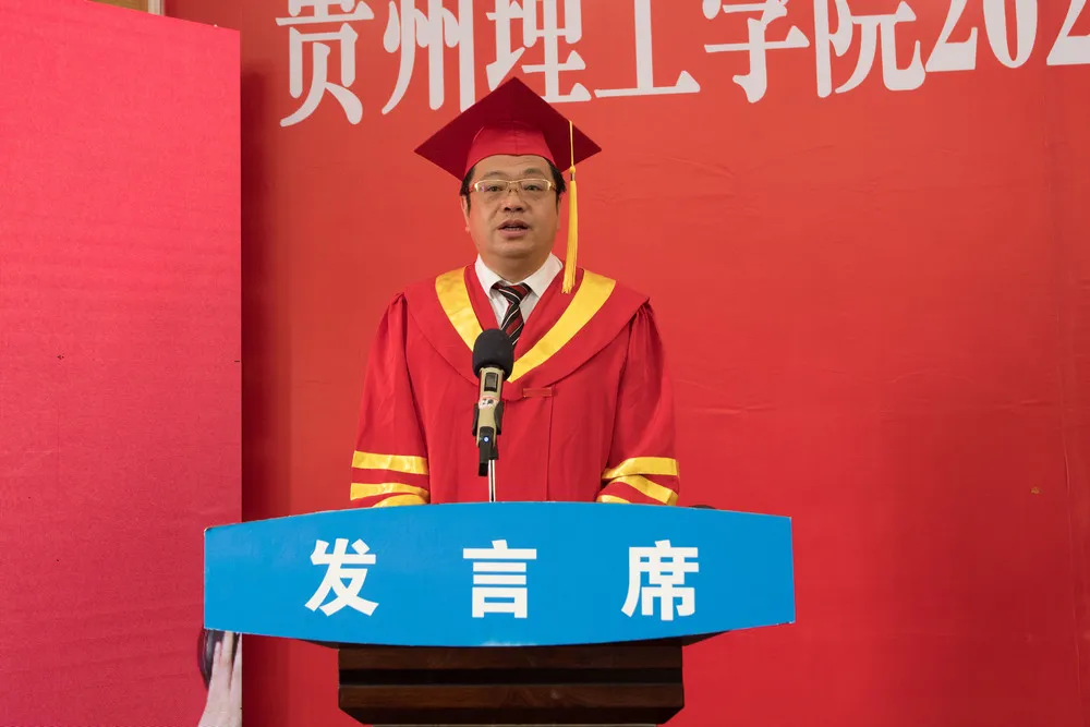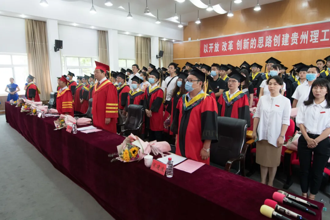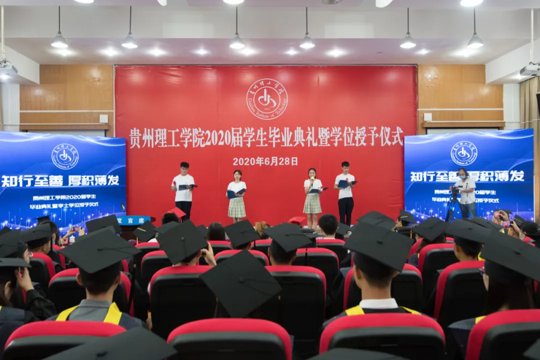 6月28日上午,贵州理工学院2020届毕业生毕业典礼暨学士学位授予仪式在喀斯特报告厅隆重举行,并面向全体师生和校友全程云直播。校领导曾羽、苏向东、梁杰、宋建波、胡兴灿出席典礼,各单位各部门主要负责人、教师代表及毕业生代表参加毕业典礼暨学士学位授予仪式。副院长梁杰主持典礼。
