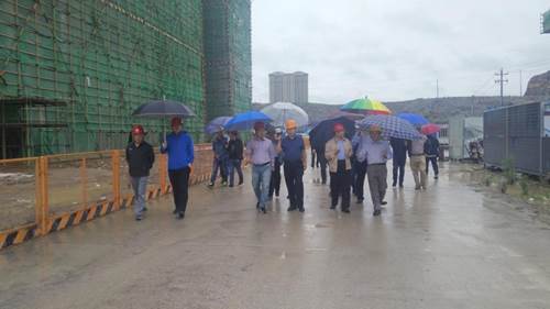 双方实地查看了我校新校区建设现场施工情况,详细了解了各单体工程进度、劳动力组织情况及材料准备情况等。目前新校区B02\B03\C05\H04-1、2、4、5\H05共8栋建筑主体框架已经封顶,正在全力推进这8栋建筑的主体砌筑、装修、水电安装等工作。