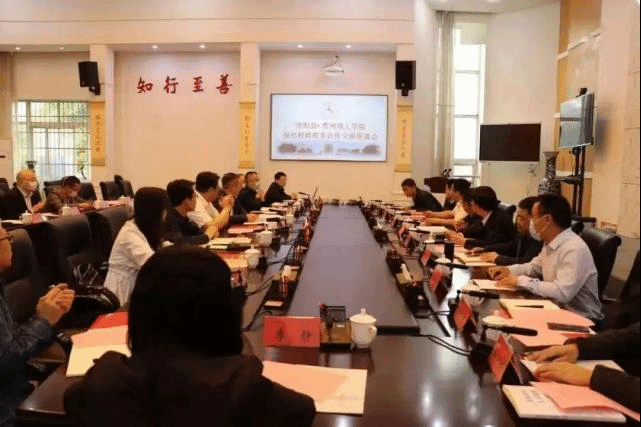 本网讯 为深入开展2022年全省“人才月”和“就业促进周”活动,着力推动校政校企“产学研”深度融合,全面构建校政校企协同创新战略合作和长效机制,助力全省乡村振兴。5月11日,贵州理工学院与开阳县深化校政校企合作交流座谈会在喀斯特会议厅召开,校党委书记苏向东,副校长林长松与开阳县委书记王启云一行就人才培养、深化产教融合等方面深入交流探讨。林长松主持会议。