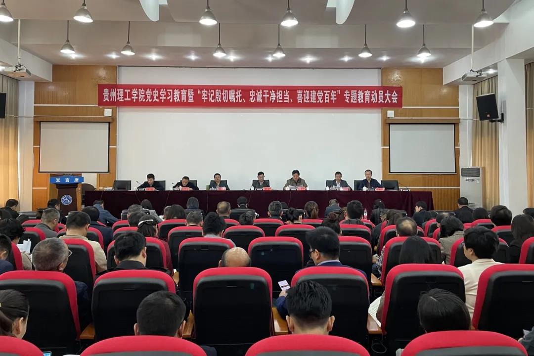本网讯 3月18日,贵州理工学院召开党史学习教育暨“牢记殷切嘱托、忠诚干净担当、喜迎建党百年”专题教育动员大会,贯彻落实党中央和省委关于党史学习教育的重大决策部署,对学校开展党史学习教育和“牢记殷切嘱托、忠诚干净担当、喜迎建党百年”专题教育进行动员。校领导曾羽、苏向东、胡兴灿、林长松、张开智、莫立坡、左柏州、李朋出席会议。会议由党委书记曾羽主持。