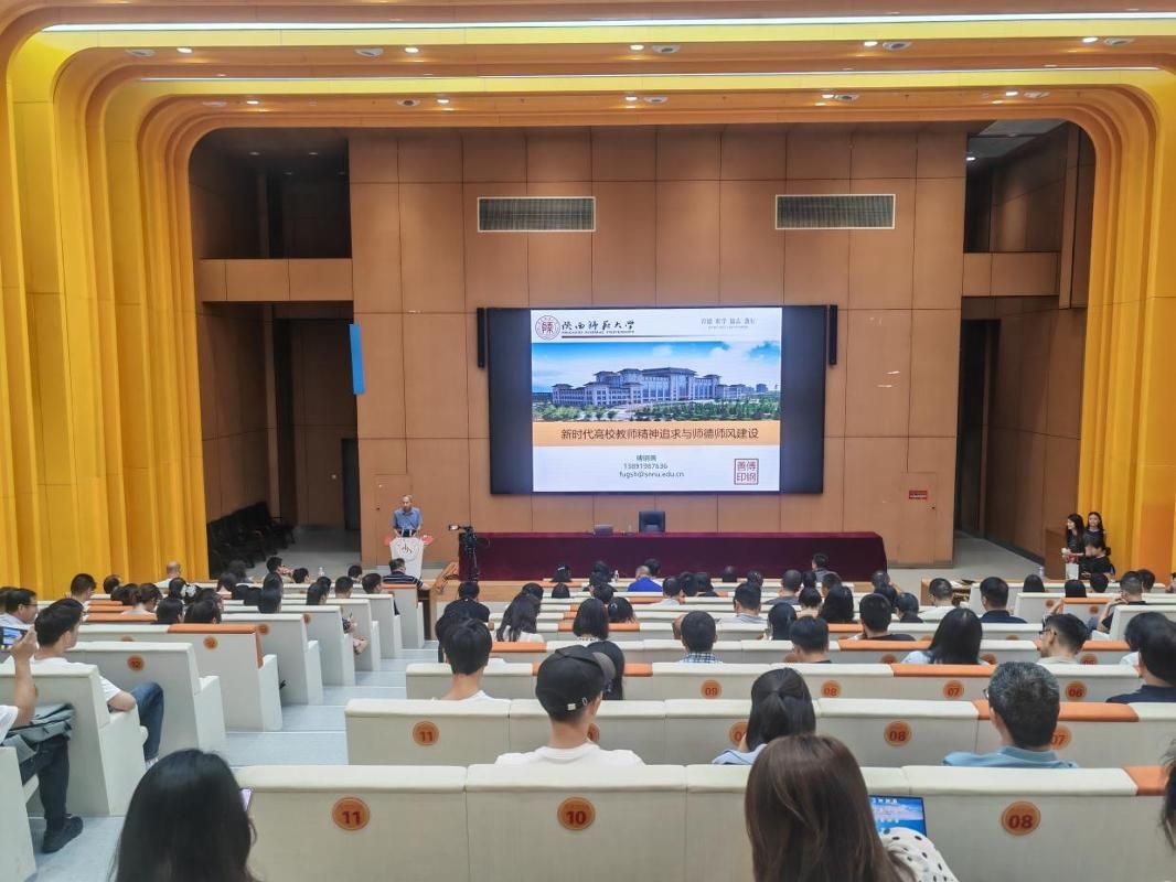 国家级教学名师、陕西师范大学傅钢善教授以“新时代高校教师的精神追求与师德师风建设”为题作报告,他围绕家国情怀与师德师风、立德树人与传道授业、精进业务与使命担当三方面的内容,结合新时代教育使命,深入阐释了教育家精神的核心内涵。他强调,教育家精神不仅是教育事业的灵魂,更是每一位教师的精神坐标,高校教师应自觉以教育家为榜样,在教书育人中践行崇高师德。