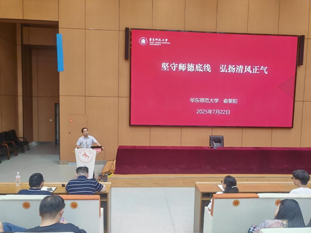 培训设置“坚守师德底线 弘扬清风正气”警示教育环节,通过典型案例剖析、政策法规解读、警示教育片观看等形式,深入剖析近年来高校教师违反师德师风的典型案例,警示全体教职工以案为鉴、警钟长鸣。华东师范大学纪委副书记俞黎阳强调,师德师风是评价教师队伍素质的第一标准,全体教师必须严守《新时代高校教师职业行为十项准则》,坚决不触碰“红七条”等师德禁区,做到知敬畏、存戒惧、守底线。