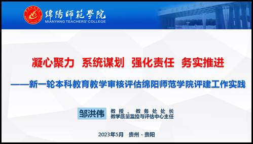 会议邀请教育部评估中心盛敏处长做《以评估定向促建促强 共商共研助推学校高质量发展---新一轮审核评估实践视角》报告、大连理工大学朱弘教授做《新一轮审核评估方案解读与实施要点》报告、绵阳师范学院邹洪伟教授做《凝心聚力 系统谋划 强化责任 务实推进---新一轮本科教育教学审核评估绵阳师范学院评建工作实践》报告。