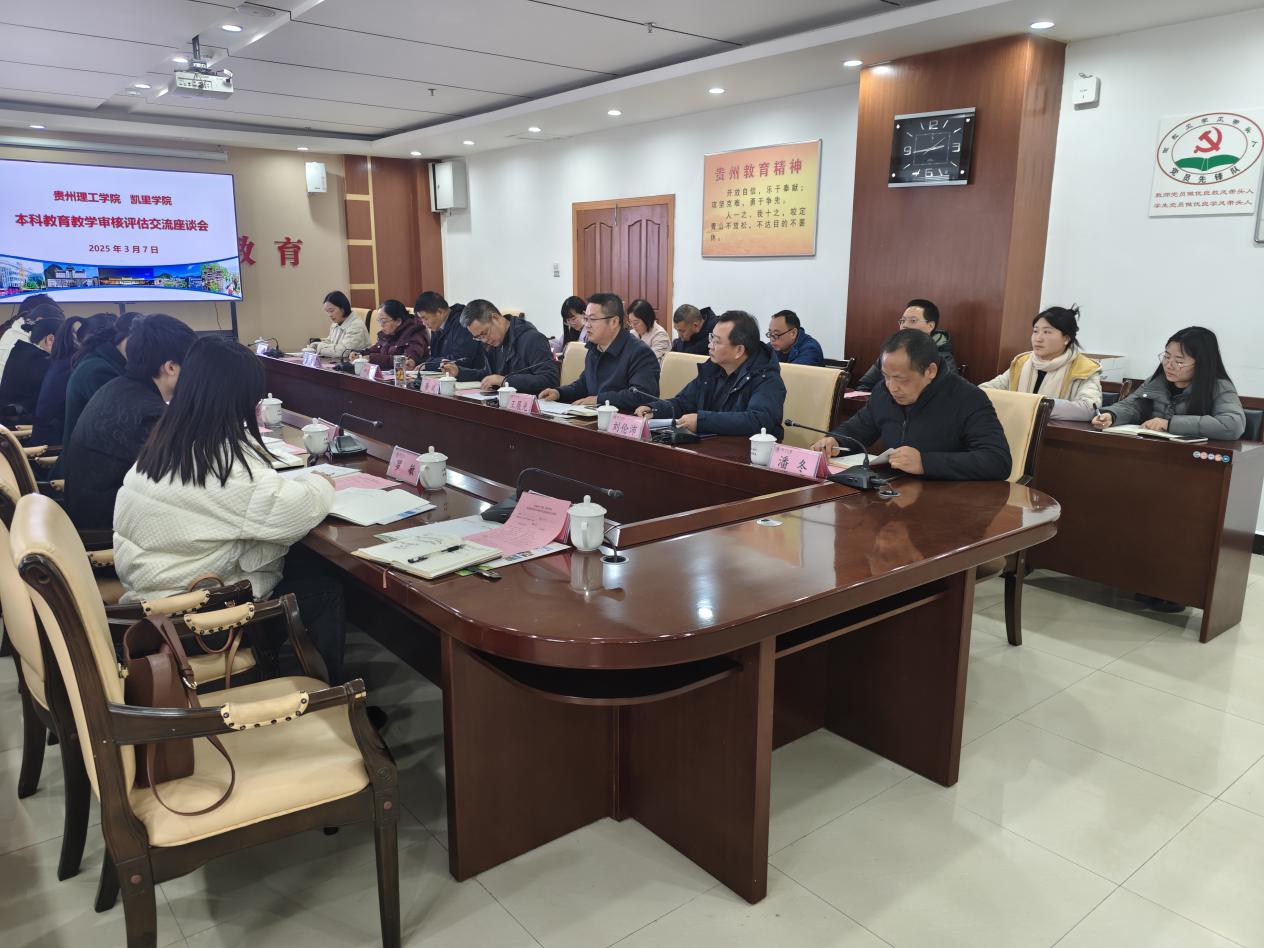 本网讯(文字/评建办 图片/王新颖)为高质量推进我校新一轮本科教育教学审核评估工作,充分汲取兄弟院校的成功经验,3月7日,校党委委员、副院长安艳玲带队赴凯里学院调研交流本科教育教学审核评估工作。座谈会在凯里学院二号会议室举行,凯里学院宋建波书记、李斌副校长、王展光副校长出席调研座谈会。我校评估中心、教务处、评建办相关人员参加调研。